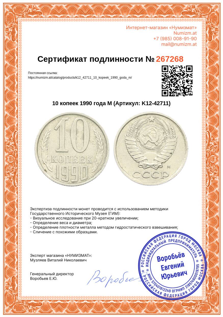 20.01.2025Интернет магазин «Нумизмат» предлагает приобрести 10 копеек 1990 года М.