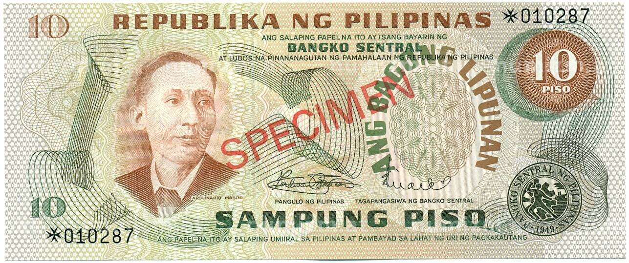 Купить 10 песо 1970 года Филиппины (ОБРАЗЕЦ) по привлекательной цене можно в нашем интернет-магазине — Вам достаточно оформить заказ на сайте. Все монеты, представленные в каталоге, находятся в наличии на нашем складе.