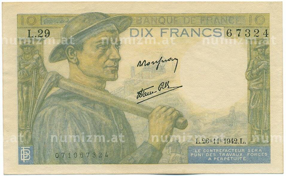 Купить 10 франков 1942 года Франция по привлекательной цене можно в нашем интернет-магазине — Вам достаточно оформить заказ на сайте. Все монеты, представленные в каталоге, находятся в наличии на нашем складе.
