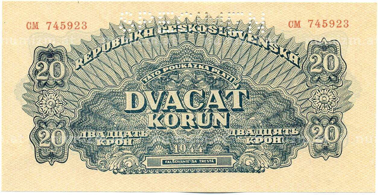 Купить 20 крон 1944 года Чехословакия (ОБРАЗЕЦ) по привлекательной цене можно в нашем интернет-магазине — Вам достаточно оформить заказ на сайте. Все монеты, представленные в каталоге, находятся в наличии на нашем складе.