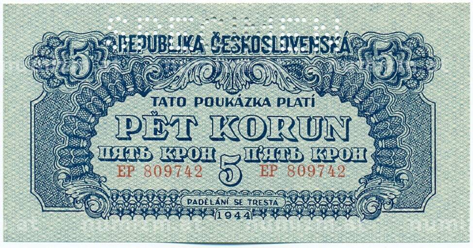 Купить 5 крон 1944 года Чехословакия (ОБРАЗЕЦ) по привлекательной цене можно в нашем интернет-магазине — Вам достаточно оформить заказ на сайте. Все монеты, представленные в каталоге, находятся в наличии на нашем складе.