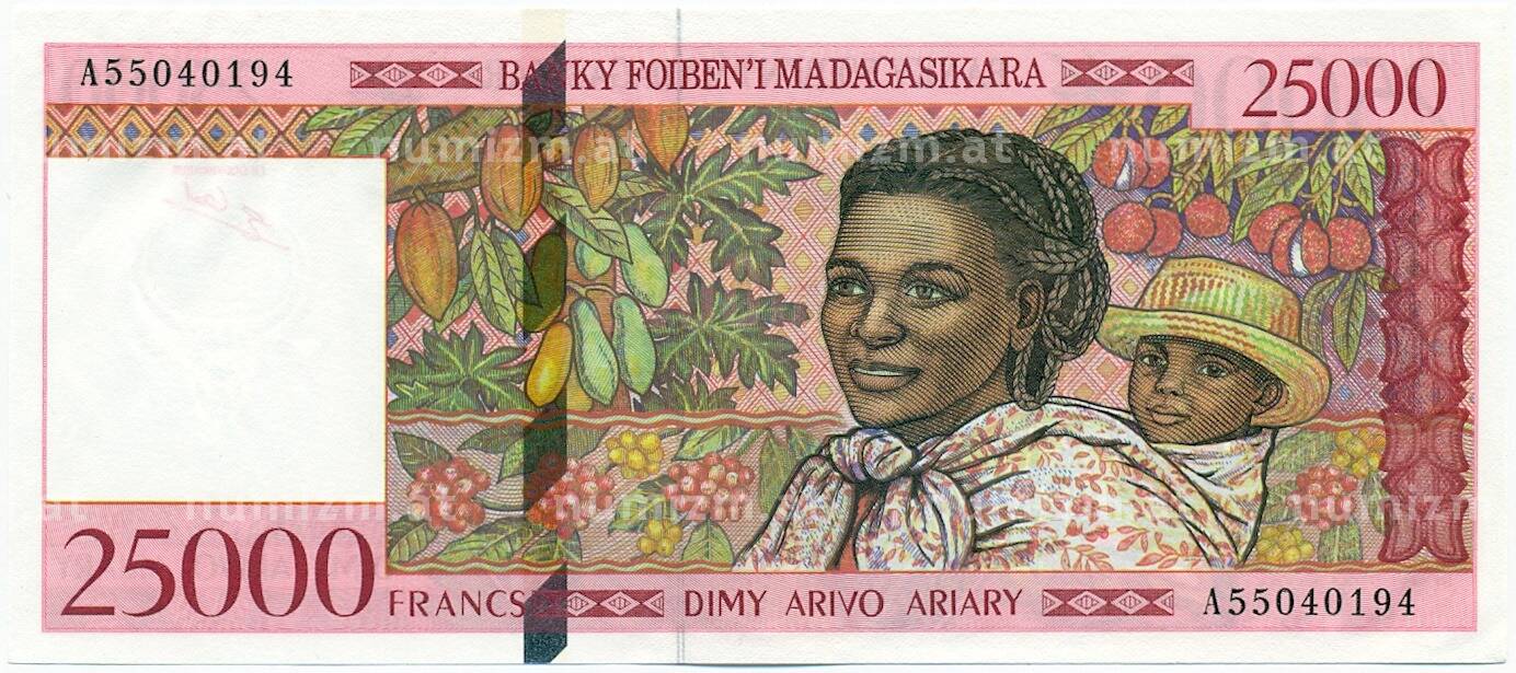 20.01.2025Интернет магазин «Нумизмат» предлагает приобрести 25000 франков 1998 года Мадагаскар.
