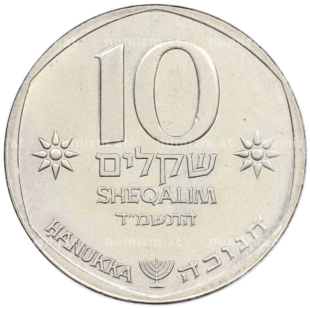 Купить 10 шекелей 1984 года (JE 5744) Израиль «Ханука» по привлекательной цене можно в нашем интернет-магазине — Вам достаточно оформить заказ на сайте. Все монеты, представленные в каталоге, находятся в наличии на нашем складе.