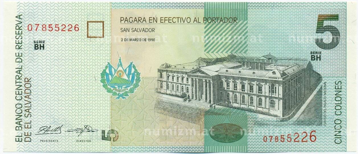 20.01.2025Интернет магазин «Нумизмат» предлагает приобрести 5 колонов 1998 года Сальвадор.
