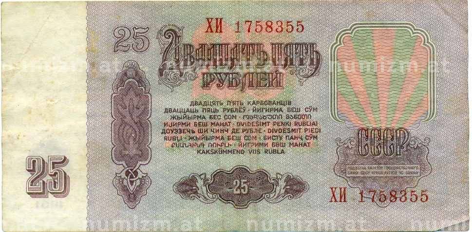 • Банкнота 25 рублей 1961 года (Артикул: K12-47270) — Фото №1 Банкнота 25 рублей 1961 года (Артикул: K12-47270) — Фото №2