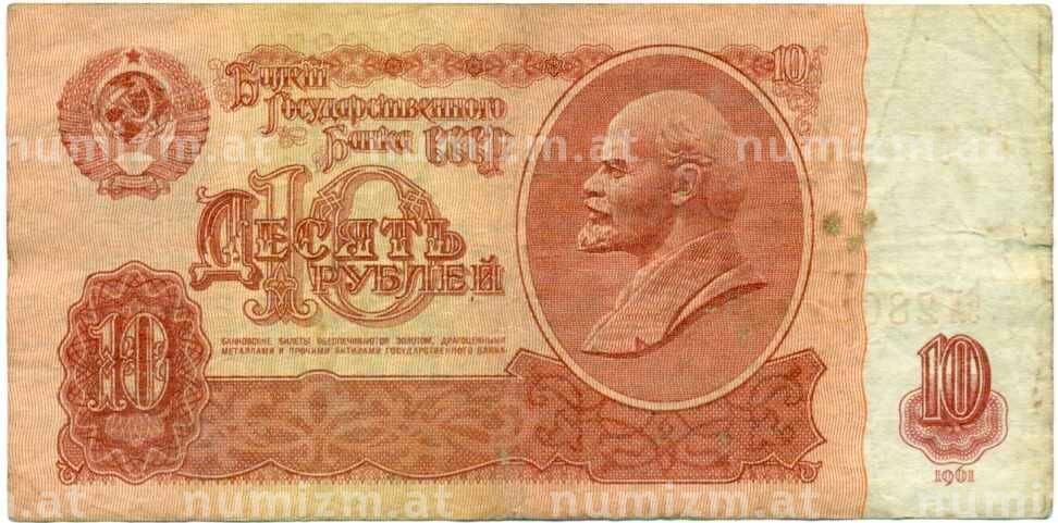 Банкнота 10 рублей 1961 года (Артикул: K12-47720): подробные характеристики, качественные фотографии в высоком разрешении, низкая цена.
