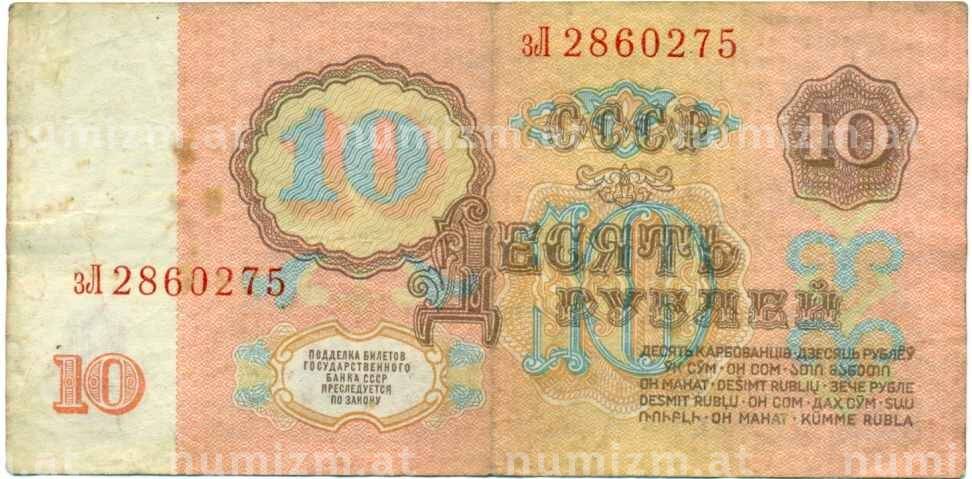 • Банкнота 10 рублей 1961 года (Артикул: K12-47720) — Фото №1 Банкнота 10 рублей 1961 года (Артикул: K12-47720) — Фото №2