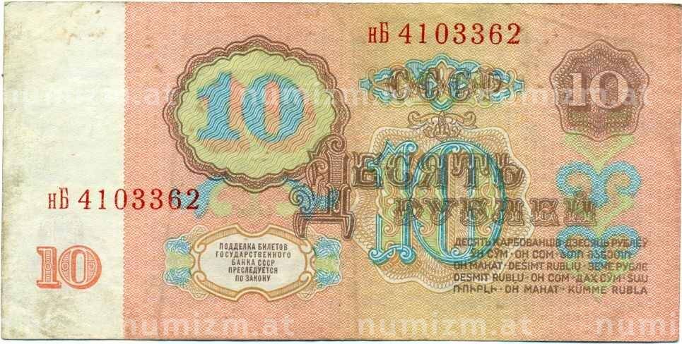 • Банкнота 10 рублей 1961 года (Артикул: K12-47863) — Фото №1 Банкнота 10 рублей 1961 года (Артикул: K12-47863) — Фото №2
