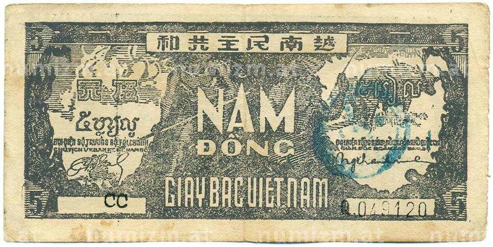 Банкнота 5 донг 1948 года Вьетнам (Артикул: K12-49974): подробные характеристики, качественные фотографии в высоком разрешении, низкая цена.