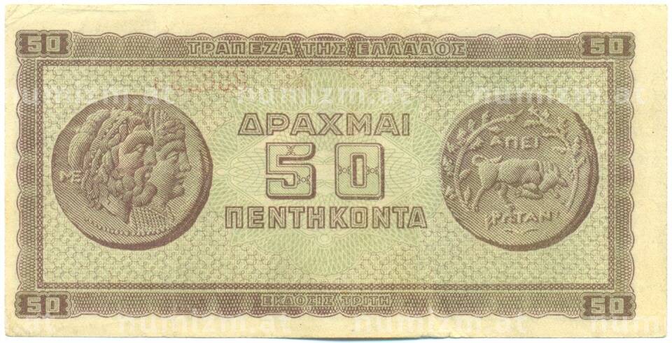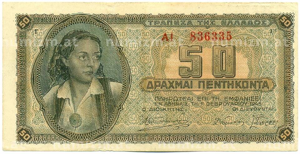 20.01.2025Интернет магазин «Нумизмат» предлагает приобрести 50 драхм 1943 года Греция.