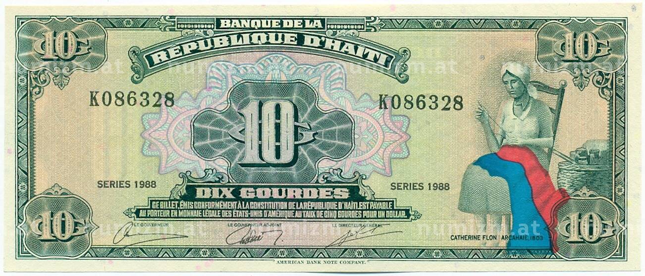 20.01.2025Интернет магазин «Нумизмат» предлагает приобрести 10 гурдов 1988 года Гаити.