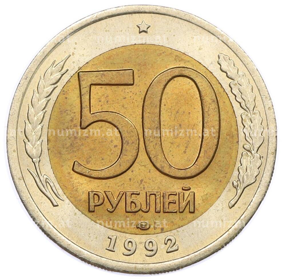 Интернет магазин «Нумизмат» предлагает приобрести 50 рублей 1992 года ЛМД.