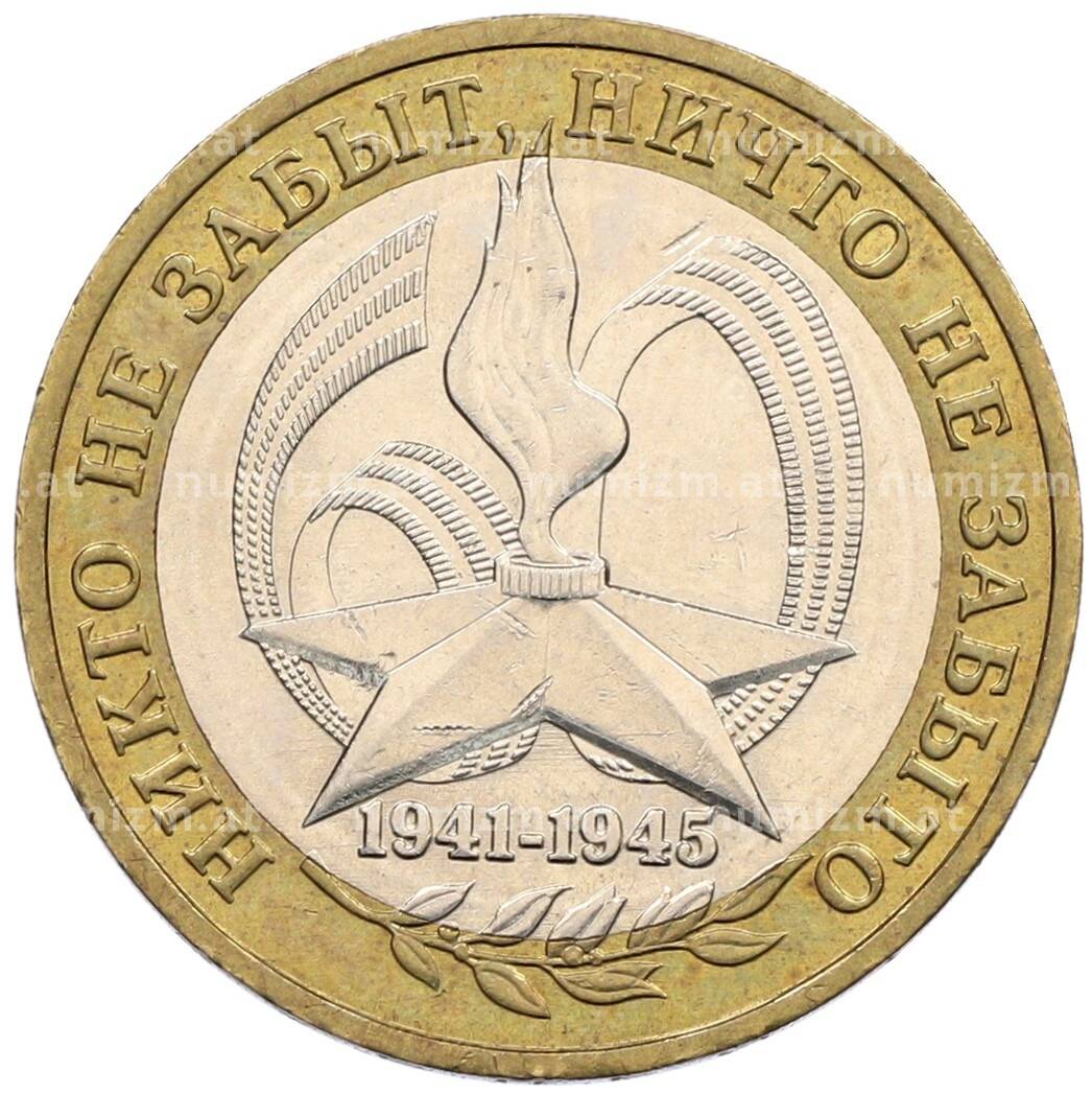 Интернет магазин «Нумизмат» предлагает приобрести 10 рублей 2005 года ММД «60 лет победы».