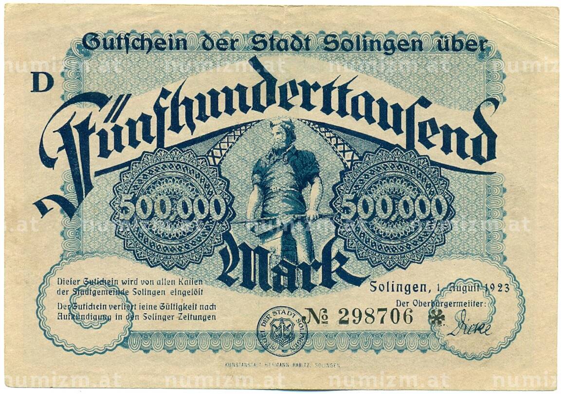 Купить 500000 марок 1923 года Германия — Золинген (Нотгельд. Гроссгельд) по привлекательной цене можно в нашем интернет-магазине — Вам достаточно оформить заказ на сайте. Все монеты, представленные в каталоге, находятся в наличии на нашем складе.