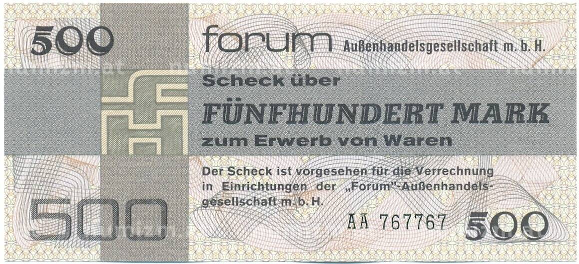 Купить 500 марок 1979 года Восточная Германия (ГДР) (Валютный сертификат) по привлекательной цене можно в нашем интернет-магазине — Вам достаточно оформить заказ на сайте. Все монеты, представленные в каталоге, находятся в наличии на нашем складе.