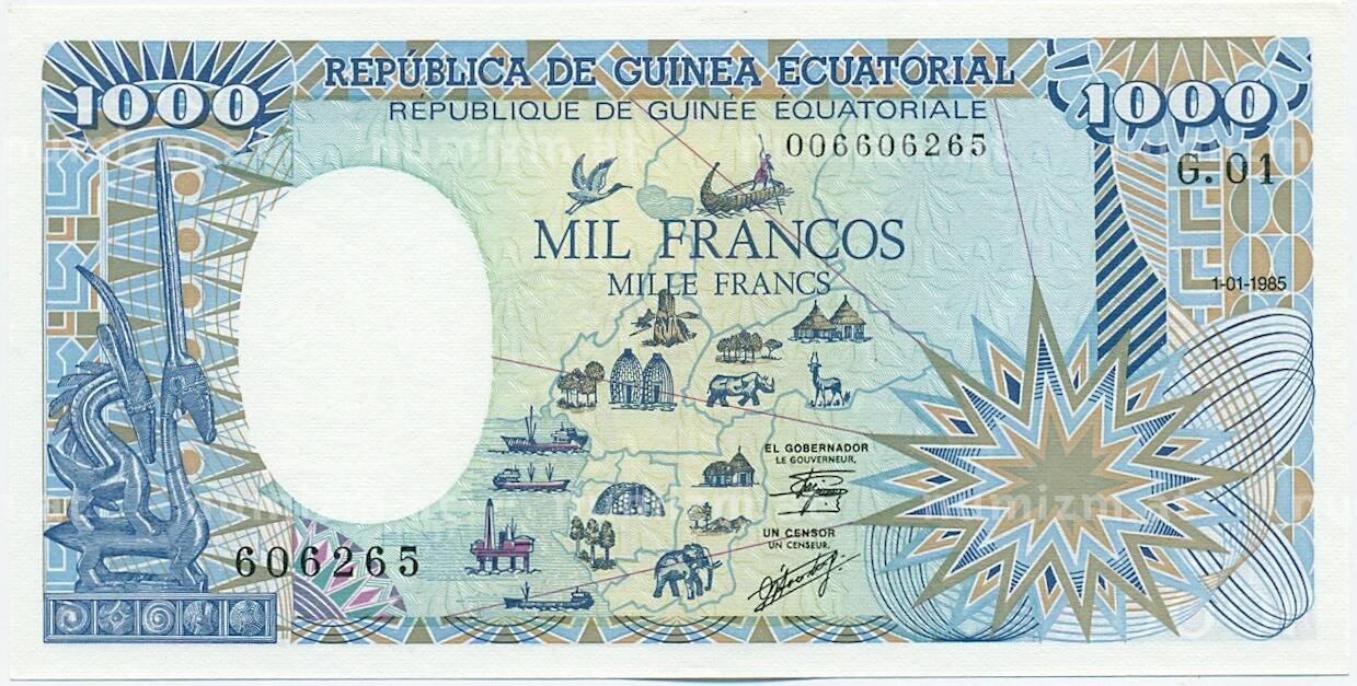 20.01.2025Интернет магазин «Нумизмат» предлагает приобрести 1000 франков 1985 года Экваториальная Гвинея.
