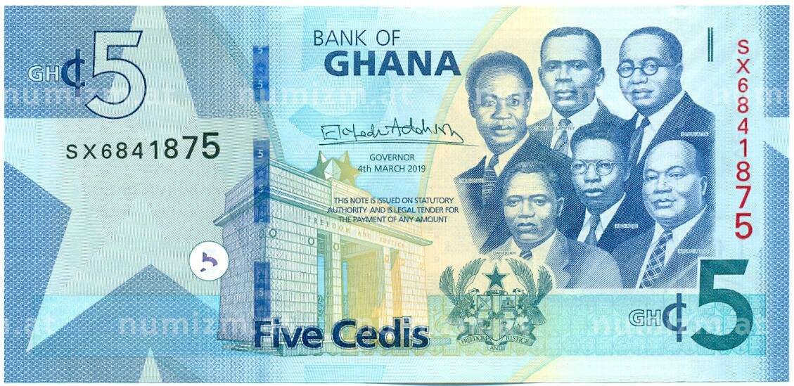 Купить 5 седи 2019 года Гана по привлекательной цене можно в нашем интернет-магазине — Вам достаточно оформить заказ на сайте. Все монеты, представленные в каталоге, находятся в наличии на нашем складе.