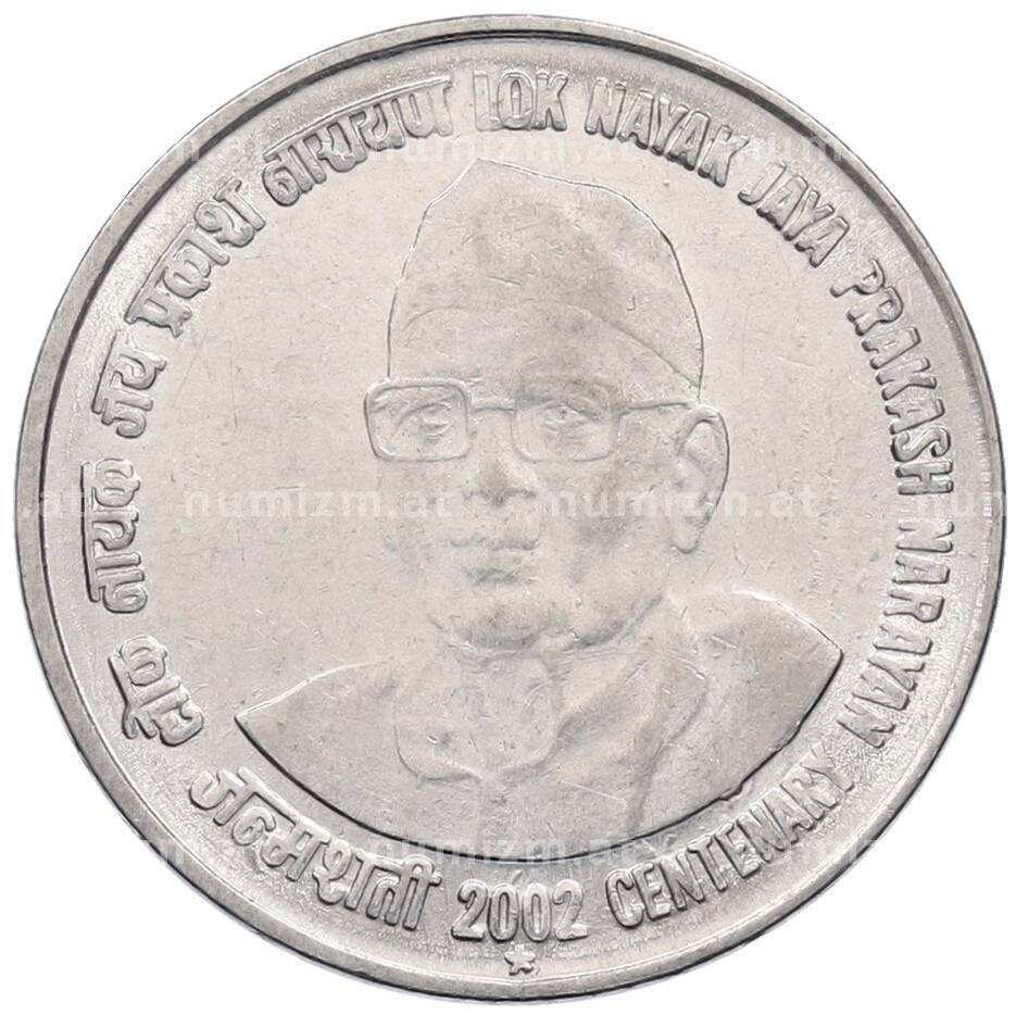 Монета 1 рупия 2002 года Индия «100 лет со дня рождения Джаяпракаша Нараяна» (Артикул: K12-52791): подробные характеристики, качественные фотографии в высоком разрешении, низкая цена.