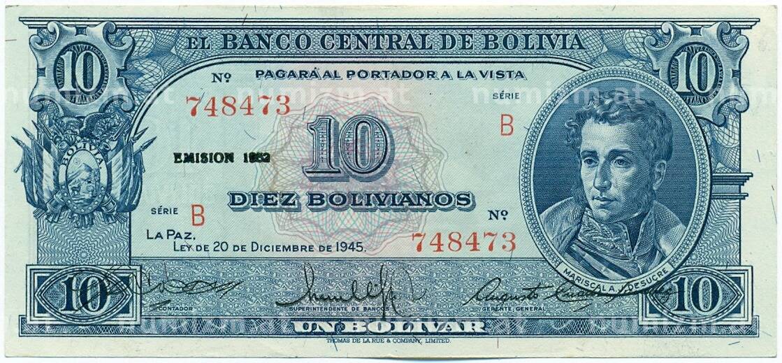 Купить 10 боливиано 1952 года Боливия по привлекательной цене можно в нашем интернет-магазине — Вам достаточно оформить заказ на сайте. Все монеты, представленные в каталоге, находятся в наличии на нашем складе.