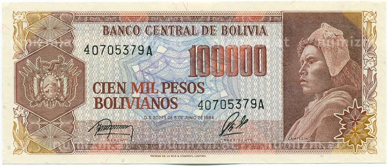 20.01.2025Интернет магазин «Нумизмат» предлагает приобрести 100000 песо 1984 года Боливия.