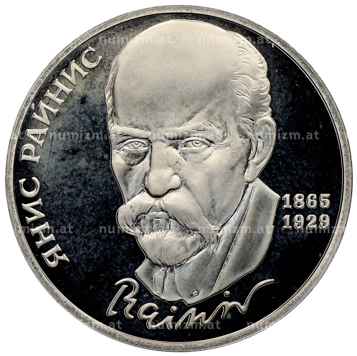 Купить 1 рубль 1990 года «Янис Райнис» (Proof) по привлекательной цене можно в нашем интернет-магазине — Вам достаточно оформить заказ на сайте. Все монеты, представленные в каталоге, находятся в наличии на нашем складе.