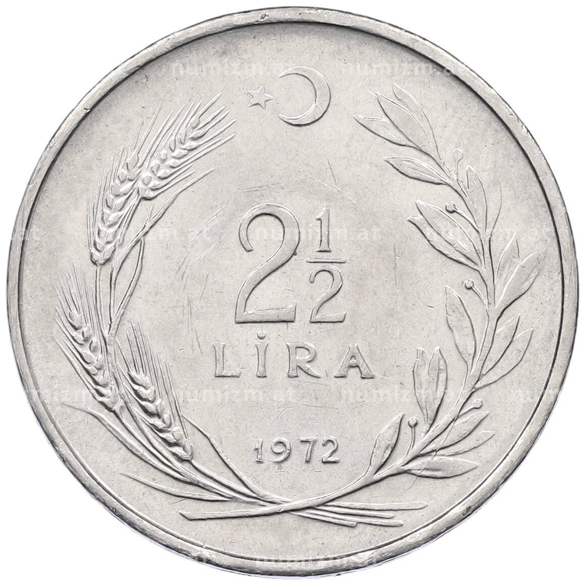 • Монета 2 1/2 лиры 1972 года Турция (Артикул: K12-54635) — Фото №1 Монета 2 1/2 лиры 1972 года Турция (Артикул: K12-54635) — Фото №2