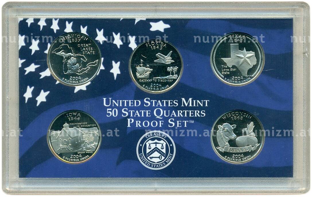 Купить Годовой набор из 5 монет 1/4 доллара (25 центов) 2004 года S США «Штаты и территории» по привлекательной цене можно в нашем интернет-магазине — Вам достаточно оформить заказ на сайте. Все монеты, представленные в каталоге, находятся в наличии на нашем складе.