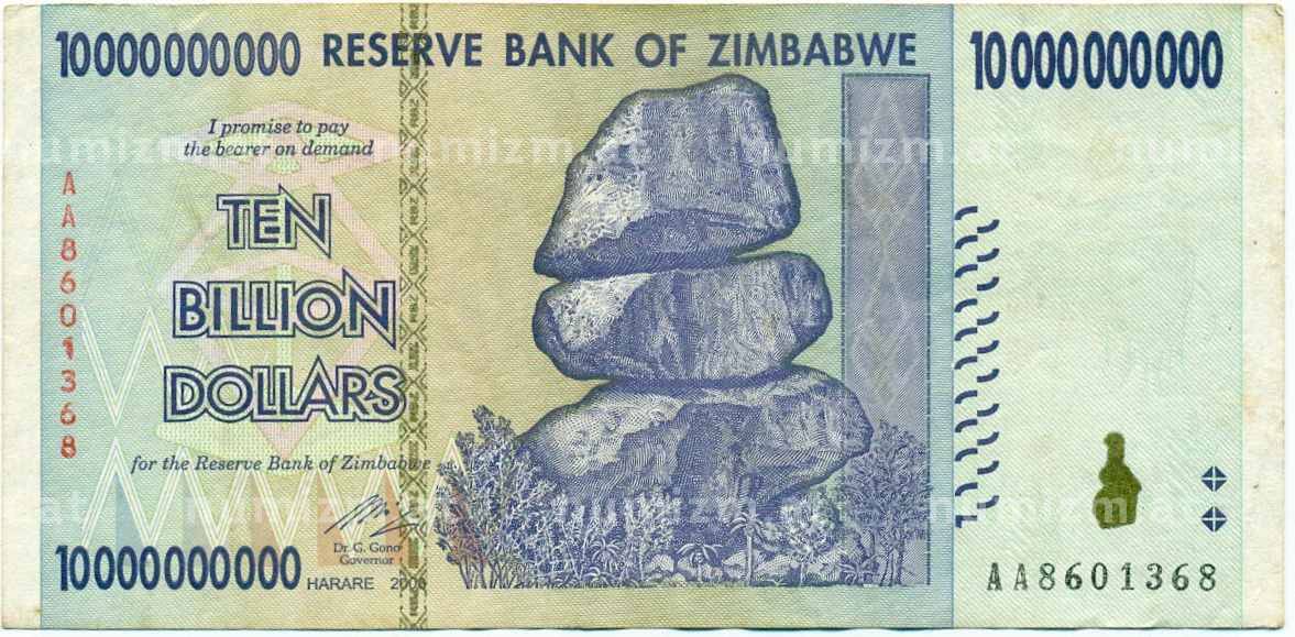 • Банкнота 10 миллиардов долларов 2008 года Зимбабве (Артикул: K12-56373) — Фото №1 Банкнота 10 миллиардов долларов 2008 года Зимбабве (Артикул: K12-56373) — Фото №2