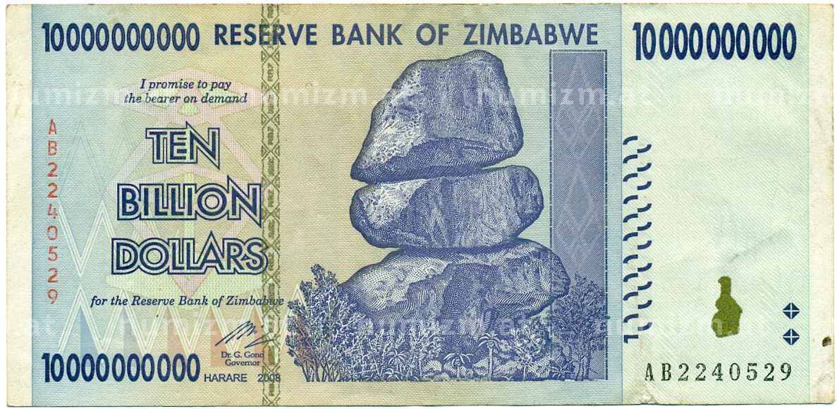 • Банкнота 10 миллиардов долларов 2008 года Зимбабве (Артикул: K12-56396) — Фото №1 Банкнота 10 миллиардов долларов 2008 года Зимбабве (Артикул: K12-56396) — Фото №2