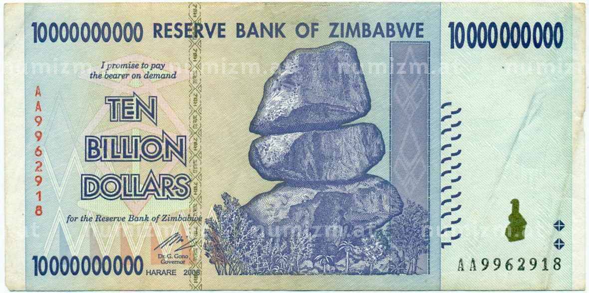 • Банкнота 10 миллиардов долларов 2008 года Зимбабве (Артикул: K12-56399) — Фото №1 Банкнота 10 миллиардов долларов 2008 года Зимбабве (Артикул: K12-56399) — Фото №2