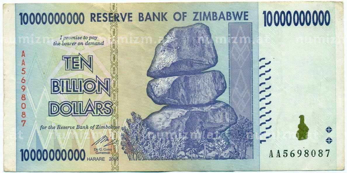 Интернет магазин «Нумизмат» предлагает приобрести 10 миллиардов долларов 2008 года Зимбабве.