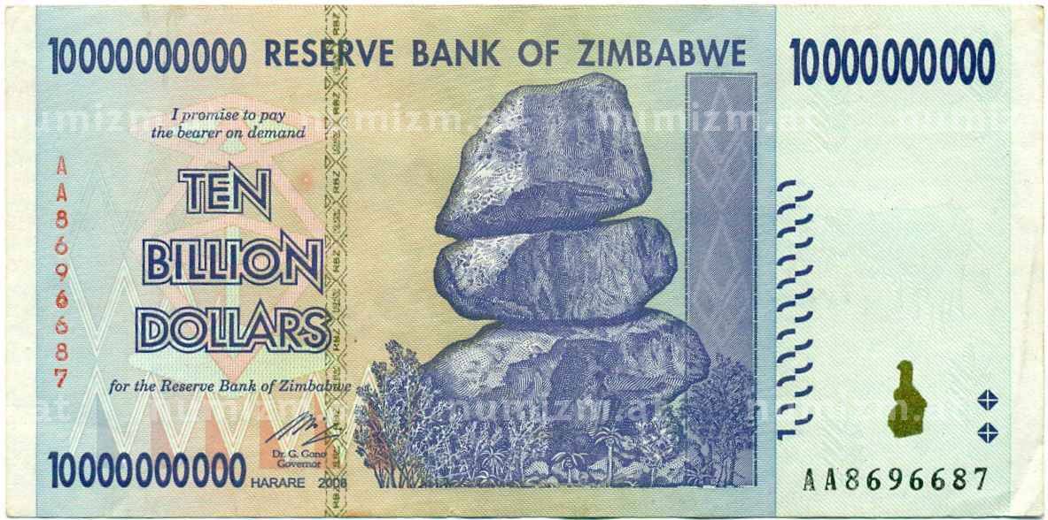 • Банкнота 10 миллиардов долларов 2008 года Зимбабве (Артикул: K12-56442) — Фото №1 Банкнота 10 миллиардов долларов 2008 года Зимбабве (Артикул: K12-56442) — Фото №2