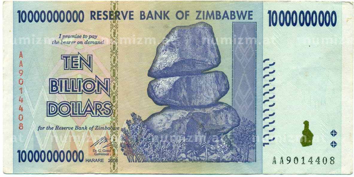 • Банкнота 10 миллиардов долларов 2008 года Зимбабве (Артикул: K12-56444) — Фото №1 Банкнота 10 миллиардов долларов 2008 года Зимбабве (Артикул: K12-56444) — Фото №2