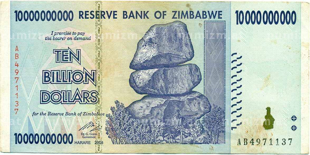 • Банкнота 10 миллиардов долларов 2008 года Зимбабве (Артикул: K12-56468) — Фото №1 Банкнота 10 миллиардов долларов 2008 года Зимбабве (Артикул: K12-56468) — Фото №2