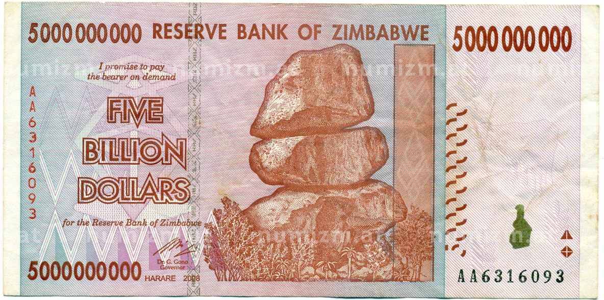 Банкнота 5 миллиардов долларов 2008 года Зимбабве [Артикул: K12-56789]