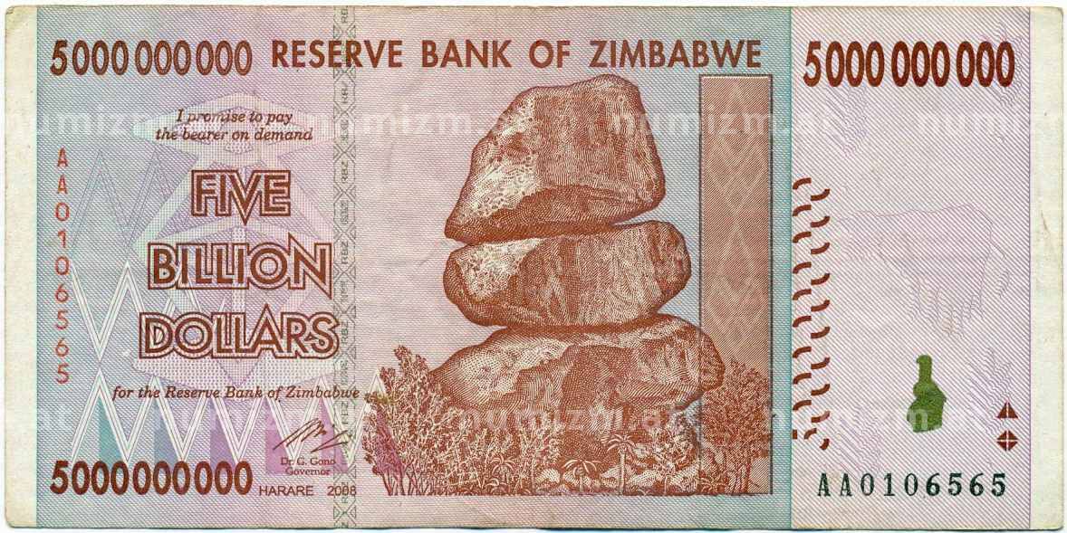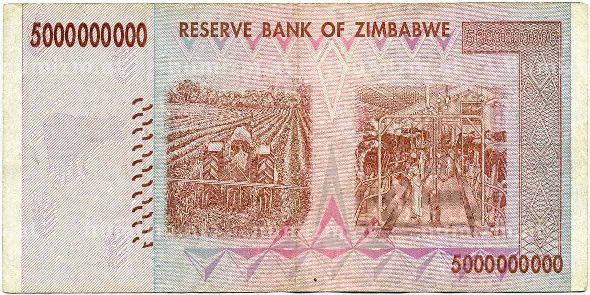 Банкнота 5 миллиардов долларов 2008 года Зимбабве (Артикул: K12-56792): подробные характеристики, качественные фотографии в высоком разрешении, низкая цена.