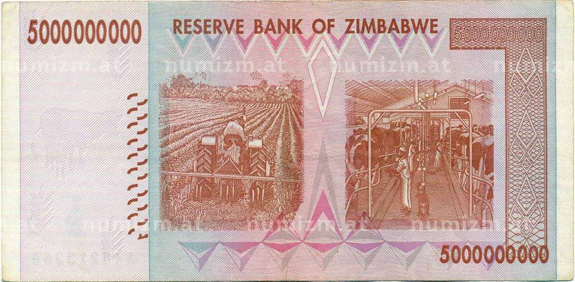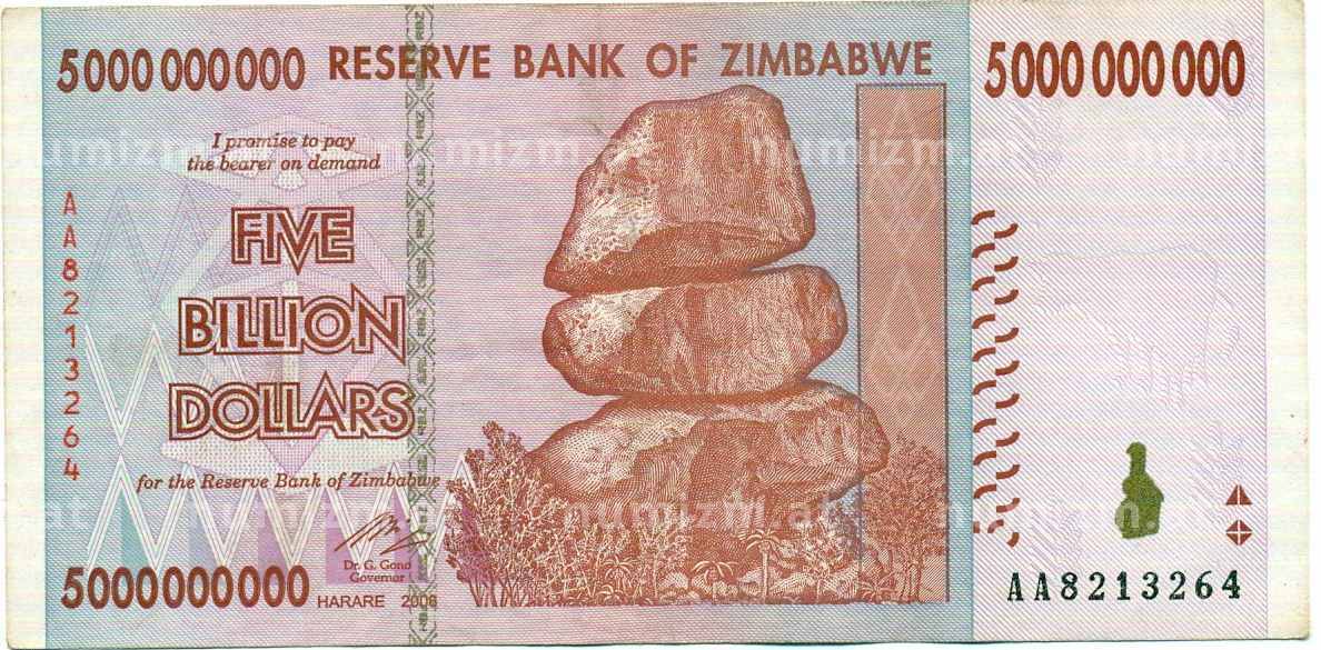 Банкнота 5 миллиардов долларов 2008 года Зимбабве (Артикул: K12-56994): подробные характеристики, качественные фотографии в высоком разрешении, низкая цена.