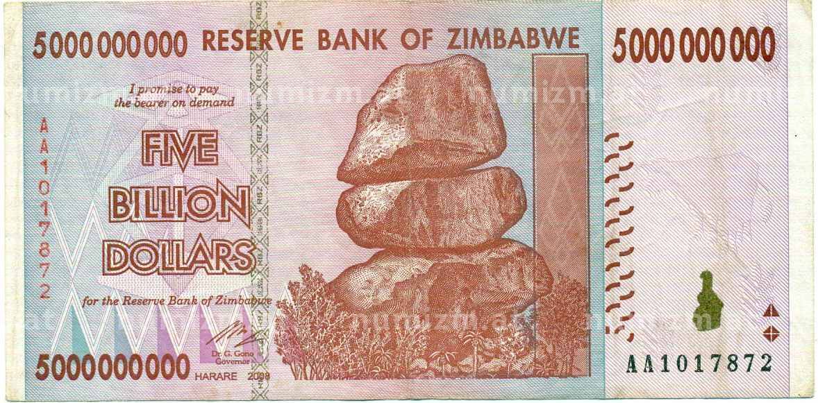 Банкнота 5 миллиардов долларов 2008 года Зимбабве (Артикул: K12-56996): подробные характеристики, качественные фотографии в высоком разрешении, низкая цена.