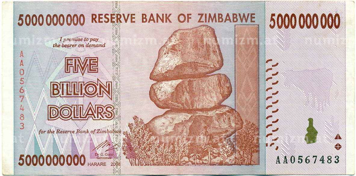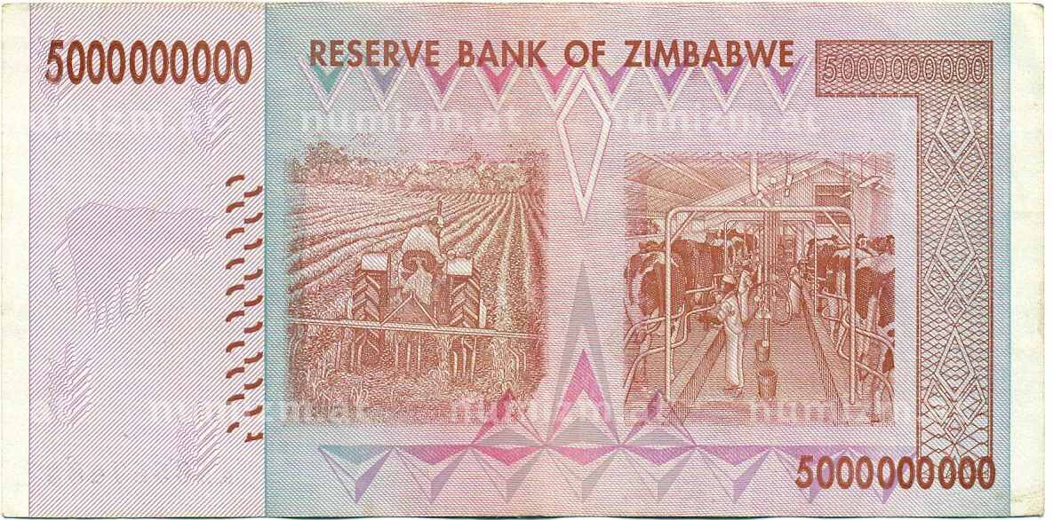 Банкнота 5 миллиардов долларов 2008 года Зимбабве (Артикул: K12-56998): подробные характеристики, качественные фотографии в высоком разрешении, низкая цена.