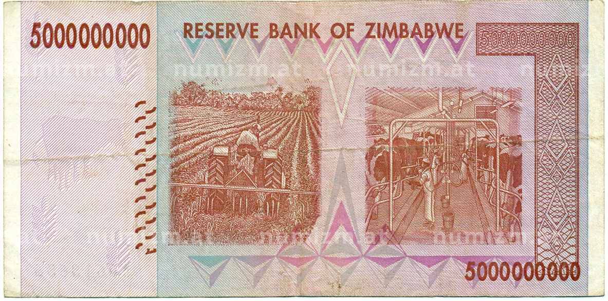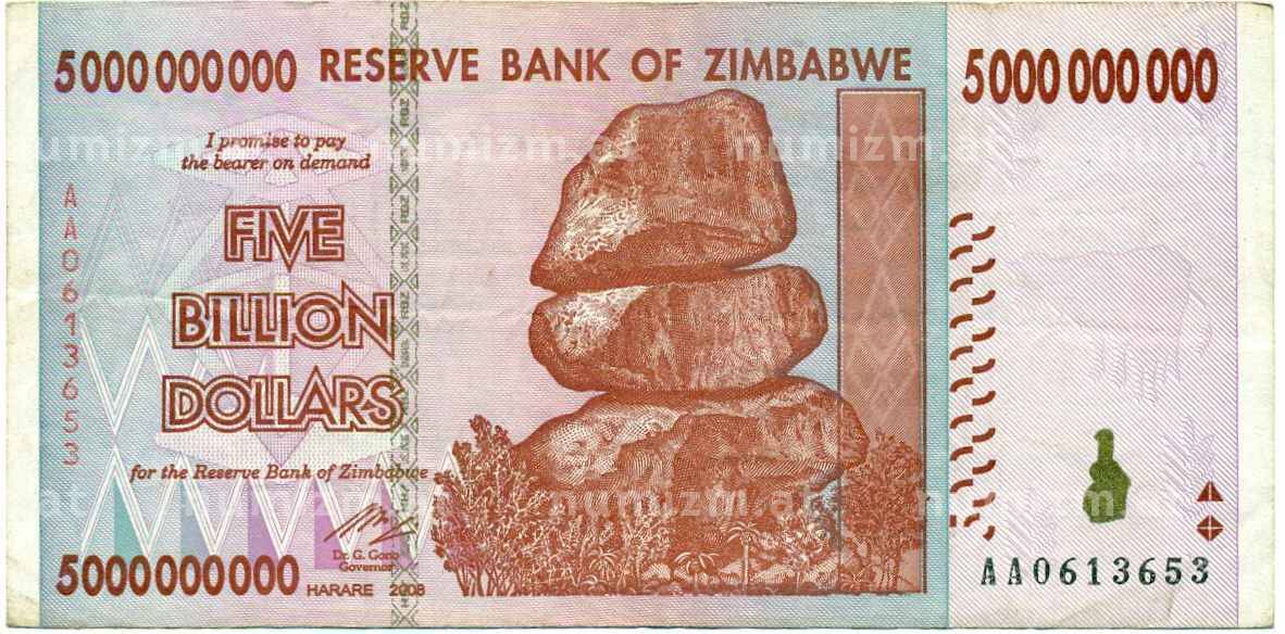 Банкнота 5 миллиардов долларов 2008 года Зимбабве (Артикул: K12-57014): подробные характеристики, качественные фотографии в высоком разрешении, низкая цена.