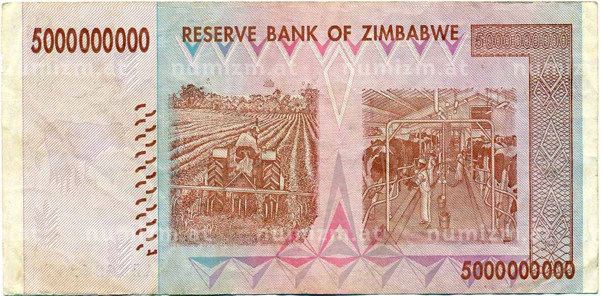 Банкнота 5 миллиардов долларов 2008 года Зимбабве (Артикул: K12-57034): подробные характеристики, качественные фотографии в высоком разрешении, низкая цена.