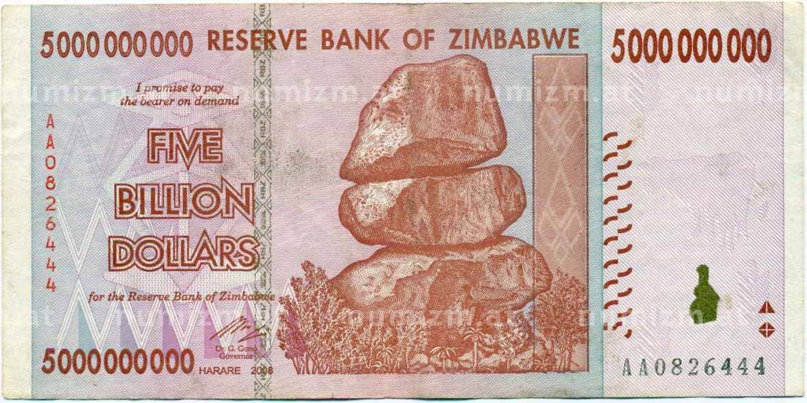 Банкнота 5 миллиардов долларов 2008 года Зимбабве (Артикул: K12-57040): подробные характеристики, качественные фотографии в высоком разрешении, низкая цена.