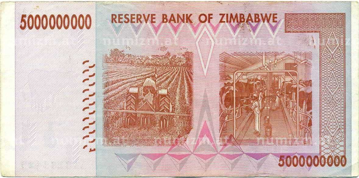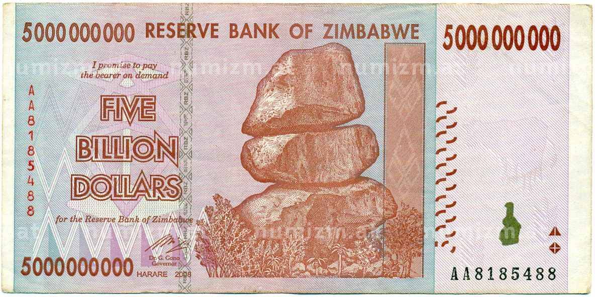 Банкнота 5 миллиардов долларов 2008 года Зимбабве (Артикул: K12-57051): подробные характеристики, качественные фотографии в высоком разрешении, низкая цена.