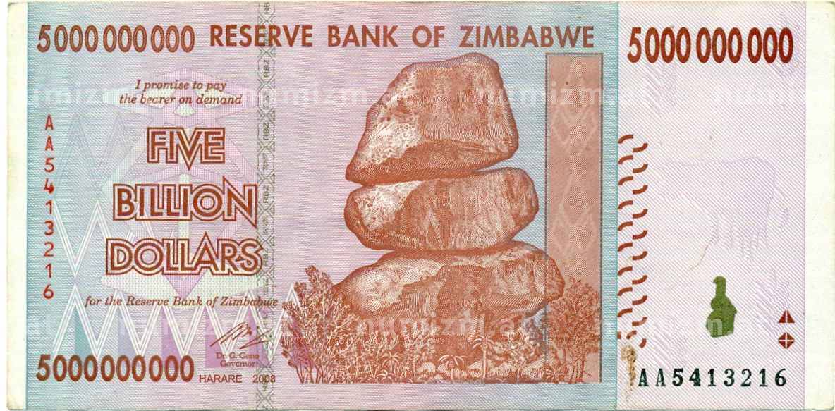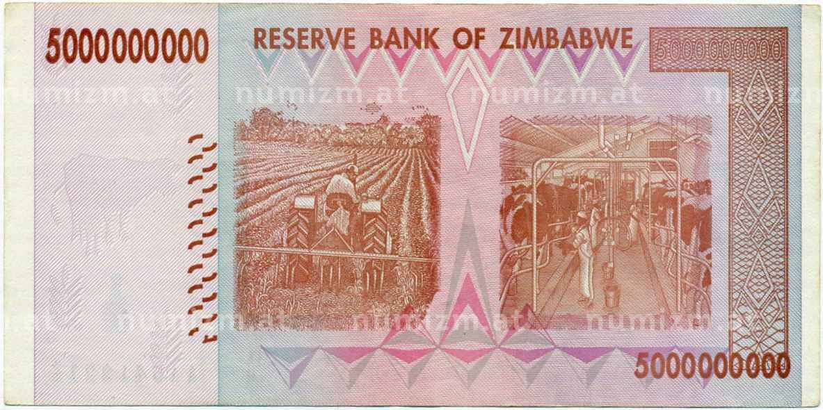 • Банкнота 5 миллиардов долларов 2008 года Зимбабве (Артикул: K12-57056) — Фото №1 Банкнота 5 миллиардов долларов 2008 года Зимбабве (Артикул: K12-57056) — Фото №2
