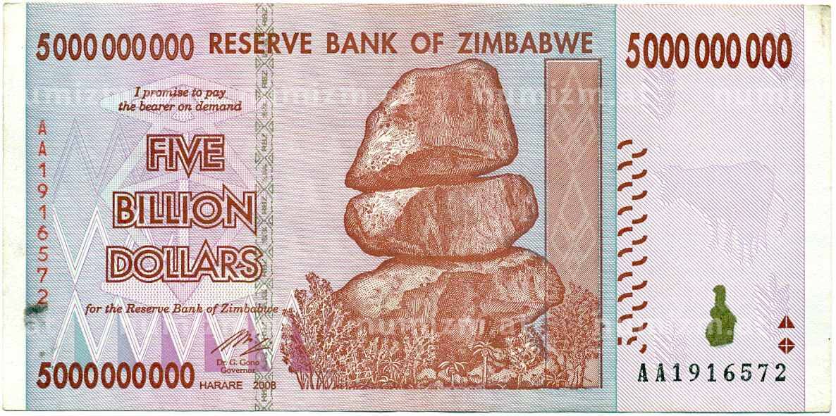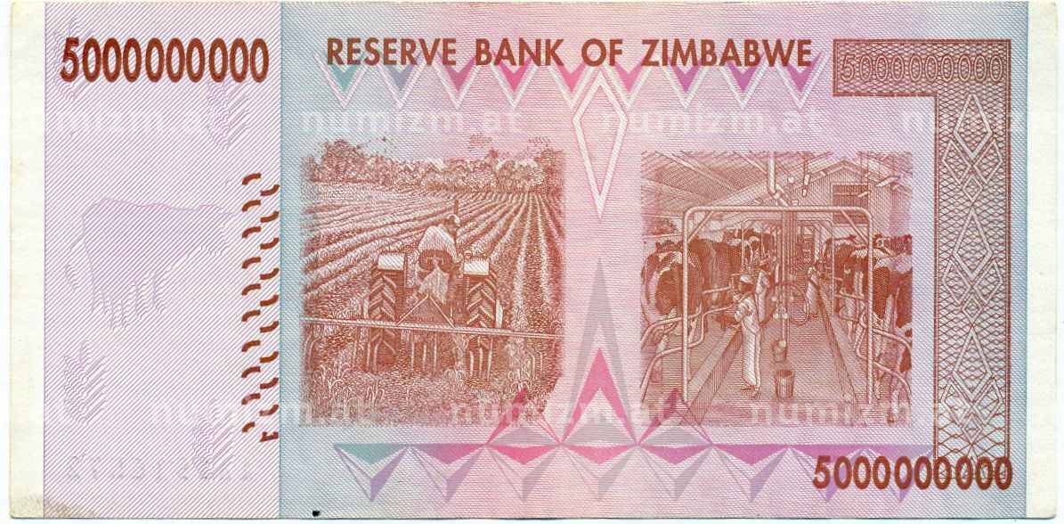 • Банкнота 5 миллиардов долларов 2008 года Зимбабве (Артикул: K12-57068) — Фото №1 Банкнота 5 миллиардов долларов 2008 года Зимбабве (Артикул: K12-57068) — Фото №2