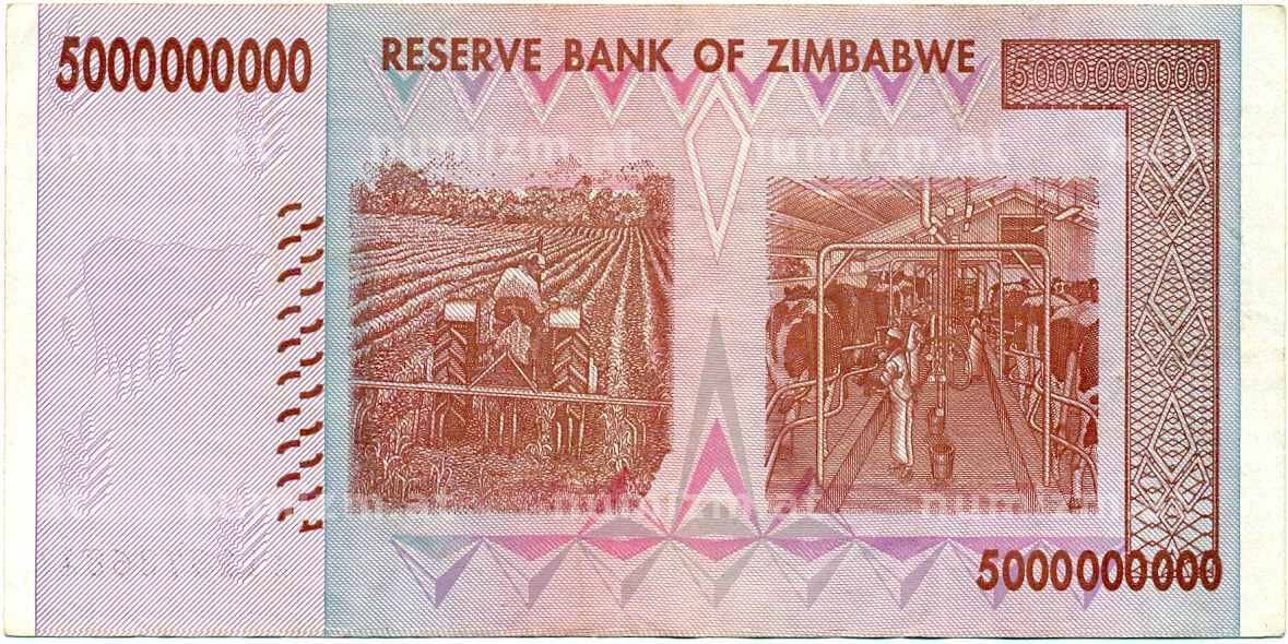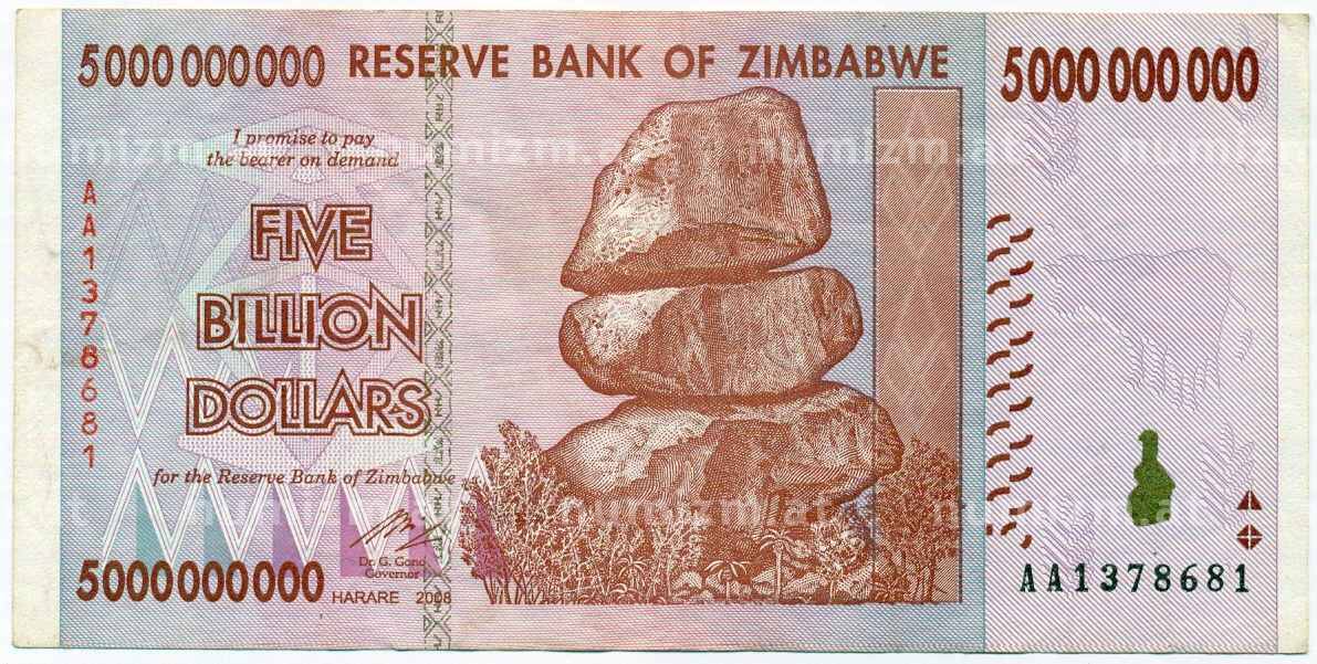• Банкнота 5 миллиардов долларов 2008 года Зимбабве (Артикул: K12-57074) — Фото №1 Банкнота 5 миллиардов долларов 2008 года Зимбабве (Артикул: K12-57074) — Фото №2