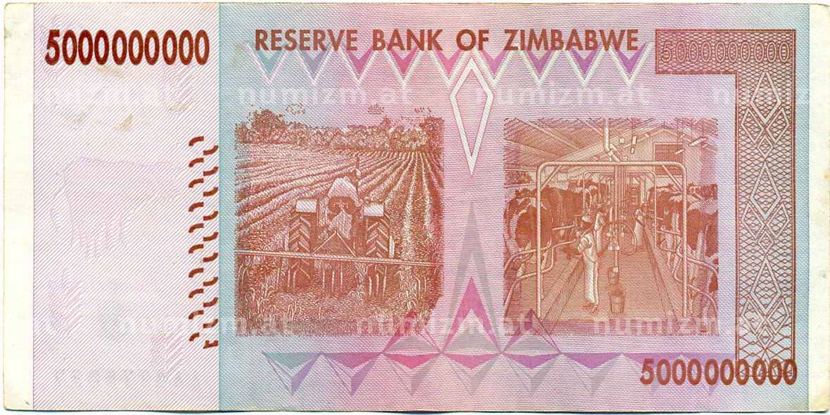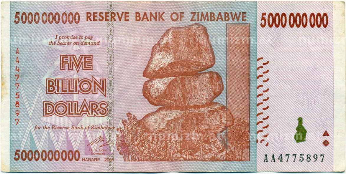Банкнота 5 миллиардов долларов 2008 года Зимбабве (Артикул: K12-57088): подробные характеристики, качественные фотографии в высоком разрешении, низкая цена.