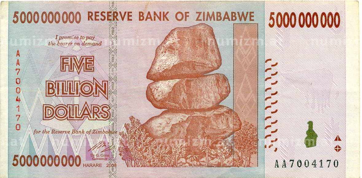 Банкнота 5 миллиардов долларов 2008 года Зимбабве (Артикул: K12-57090): подробные характеристики, качественные фотографии в высоком разрешении, низкая цена.