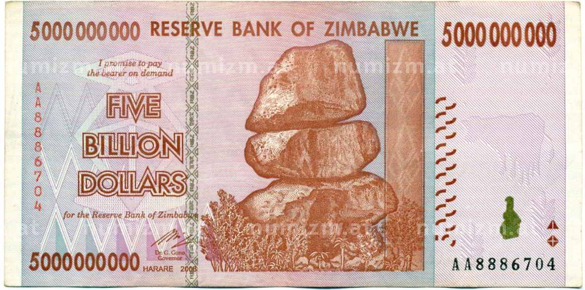 Банкнота 5 миллиардов долларов 2008 года Зимбабве (Артикул: K12-57096): подробные характеристики, качественные фотографии в высоком разрешении, низкая цена.