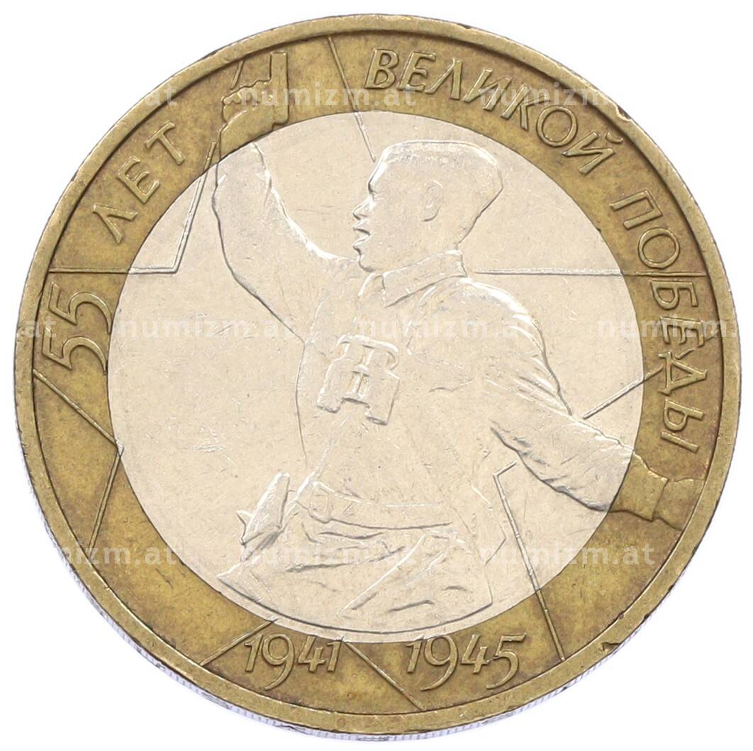 Монета 10 рублей 2000 года ММД «55 лет Великой Победы» (Артикул: K12-57729): подробные характеристики, качественные фотографии в высоком разрешении, низкая цена.